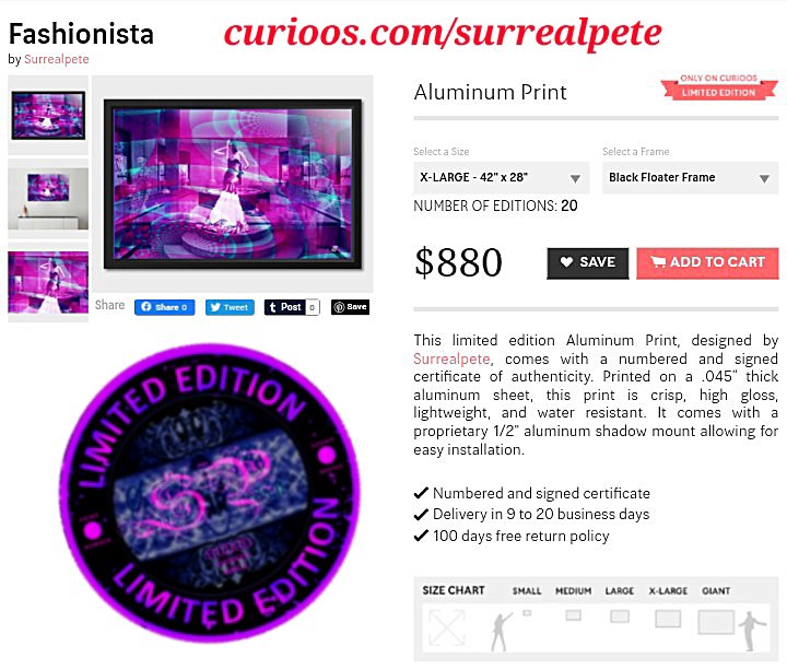 Glass print & other mediums below Metal Print Curioos If you like it, Share it:PocketTweetShare on Tumblr Click to email a link to a friend (Opens in new window) Email Click to share on WhatsApp (Opens in new window) WhatsApp More Click to share on Reddit (Opens in new window) Reddit Click to share on Telegram (Opens in new window) Telegram Click to print (Opens in new window) Print Like Loading... Related Published by surrealpete digital collage artist working in sydney wallart on metal & glass wearable art scarves & art jewels many art gifts and homewares View all posts by surrealpete